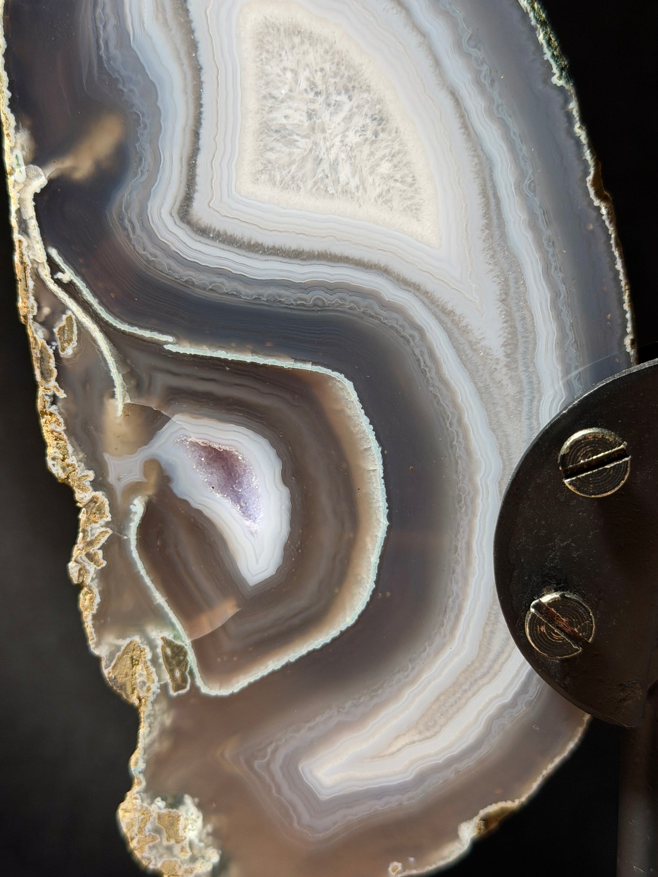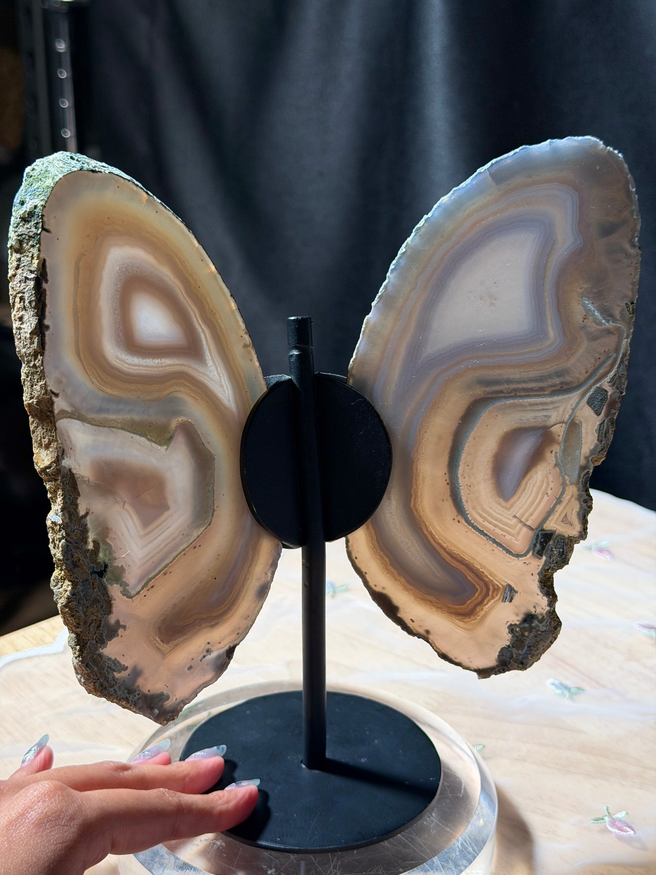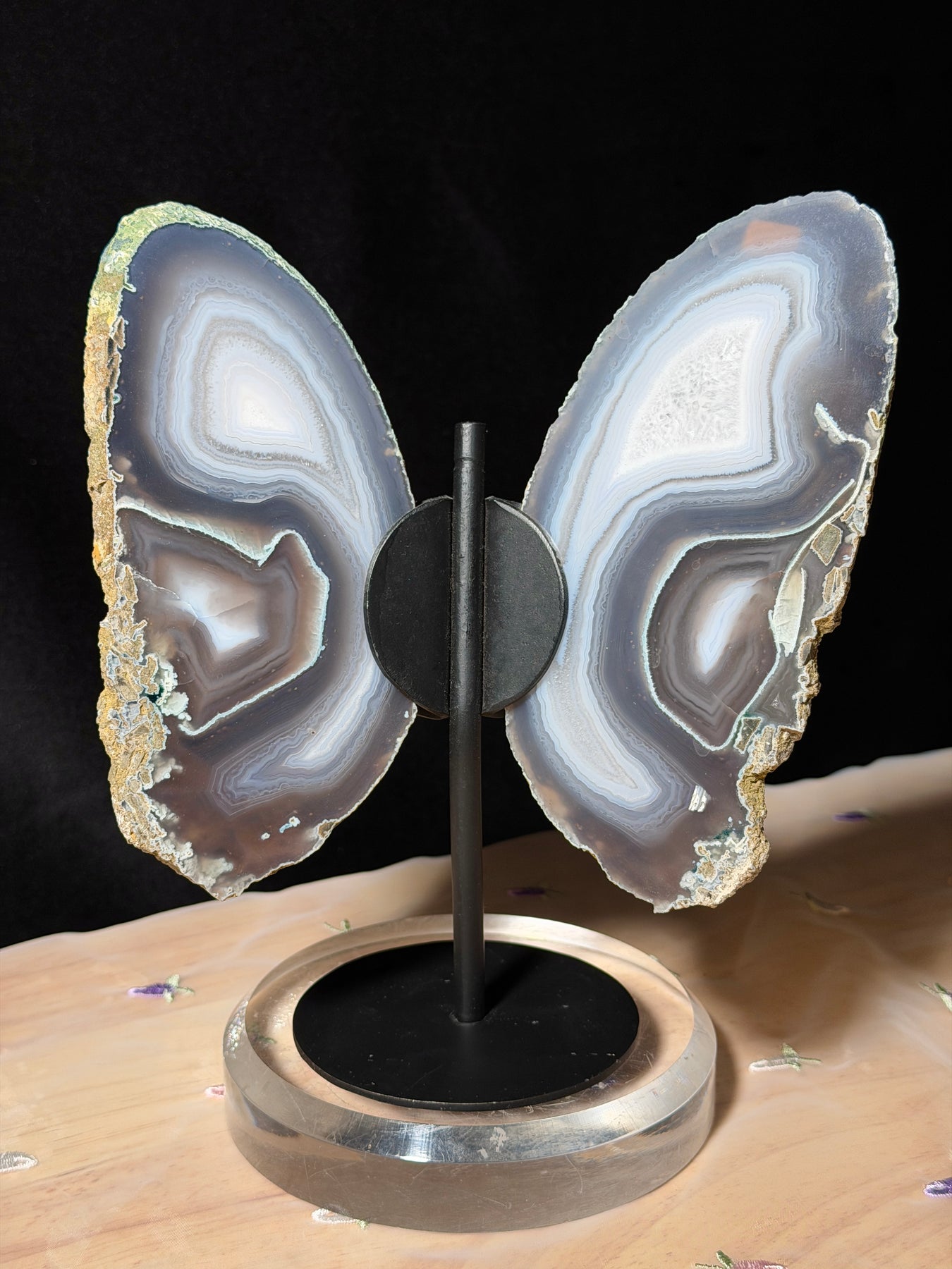 Blue Agate Butterfly from Brazil 🦋 this special piece features unique Agate banding resembling a butterfly! This piece also features small Amethyst druzy pockets 💜