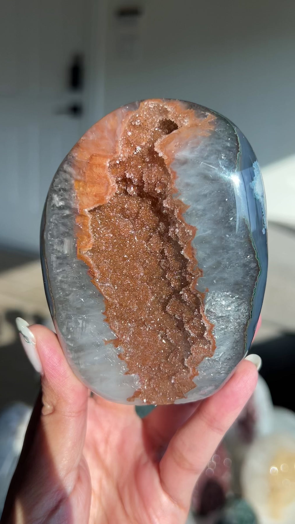 Sparkling Deep Orange Rainbow Amethyst Cutbase from Uruguay! 🍭 beautiful Agate back!