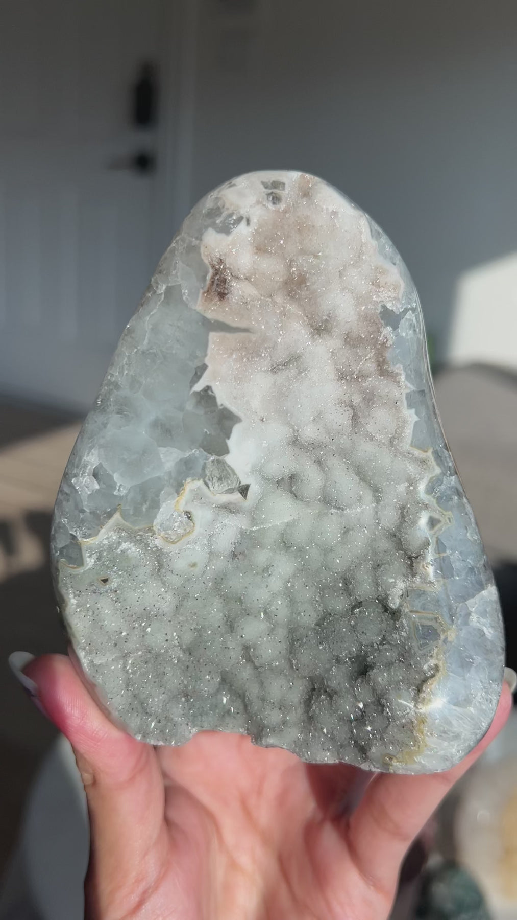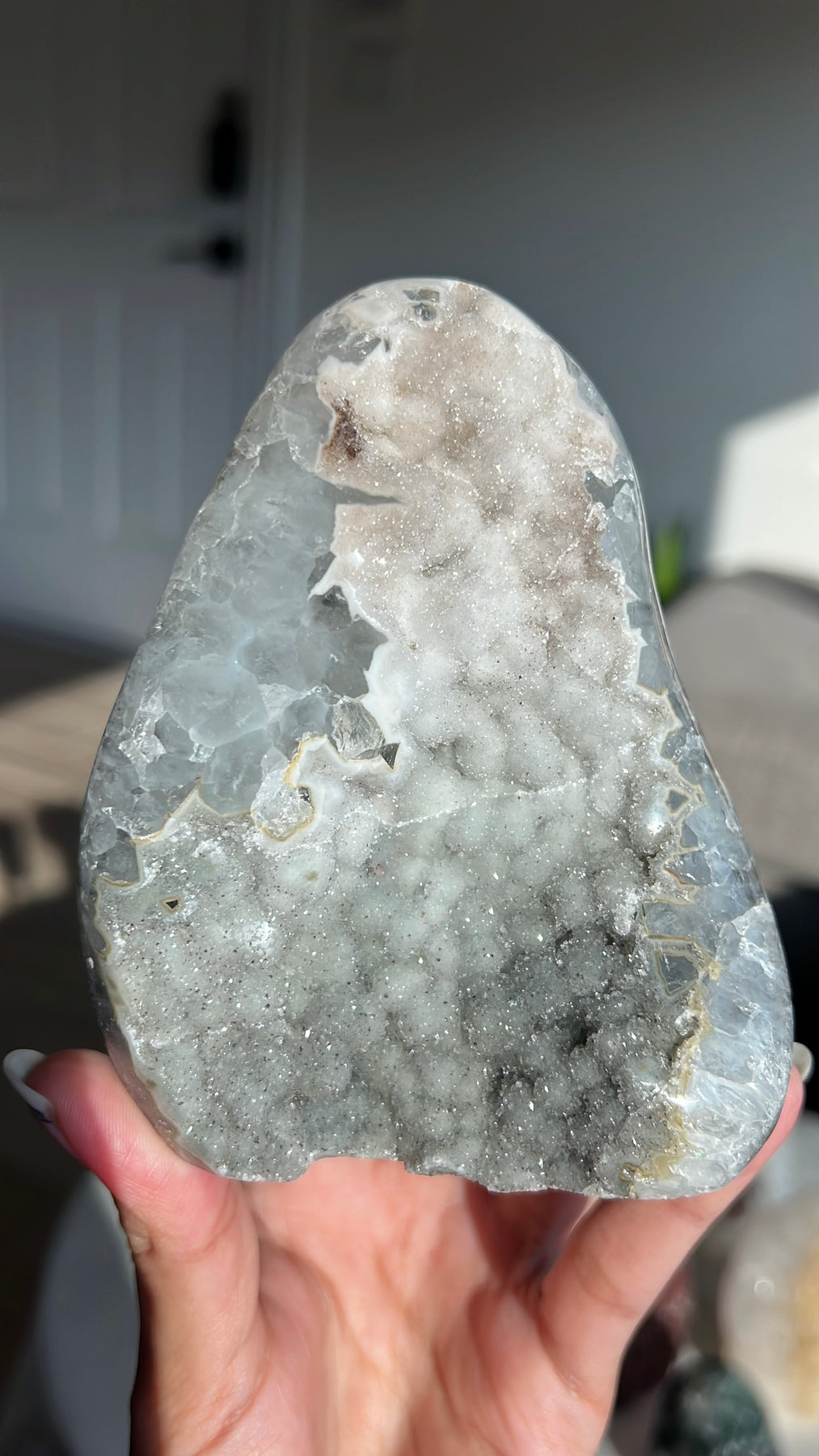 Super Sparkly White to Grey gradient Rainbow Amethyst Cutbase from Uruguay! 🍭